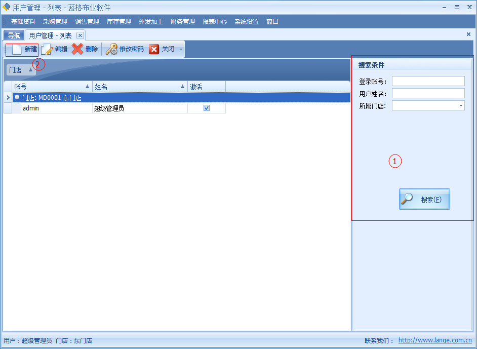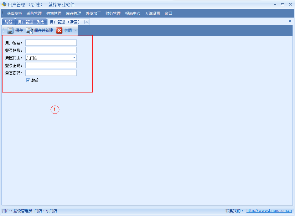 ○2 通過用戶管理列表上的【新建】按鈕進行客戶新建