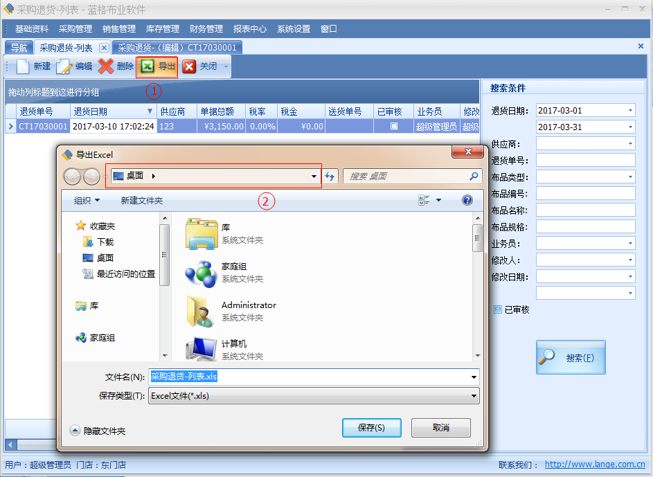 導(dǎo)出是把當(dāng)前列表中所有的記錄以 Excel 表格方式導(dǎo)出。在采購?fù)素浟斜砩宵c(diǎn)擊工具欄【導(dǎo)出】按鈕。