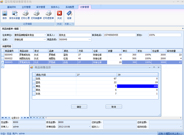 在上圖中點(diǎn)擊【新建】打開(kāi)銷(xiāo)售商品單據(jù)編輯界面。填寫(xiě)好單據(jù)相關(guān)的信息。然后點(diǎn)擊【保存】這樣就把該銷(xiāo)售商品錄入到系統(tǒng)中。當(dāng)在上圖中選擇一個(gè)單據(jù)點(diǎn)擊【編輯】,在該界面中會(huì)顯示選擇單據(jù)的詳細(xì)信息,修改其中的項(xiàng)目,然后點(diǎn)擊【保存】,單據(jù)信息就更新完成。在商品條碼框中輸入商品條碼然后按回車(chē)鍵,系統(tǒng)會(huì)自動(dòng)把該商品加入到銷(xiāo)售列表中,當(dāng)該條碼對(duì)應(yīng)多個(gè)商品時(shí),會(huì)彈出商品選擇框,選擇詳細(xì)的商品。如下圖所示: