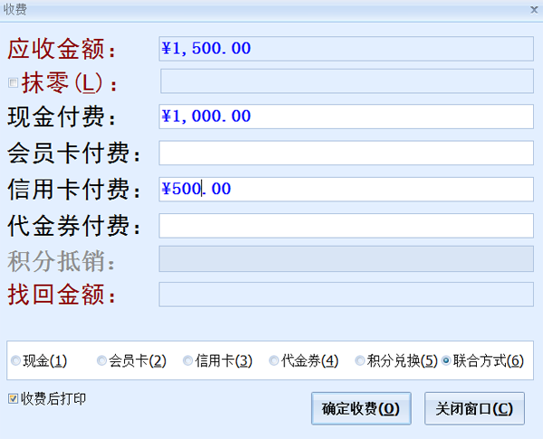 上圖數據保存好后,點擊【結算】,彈出結算窗口,如下圖所示:
