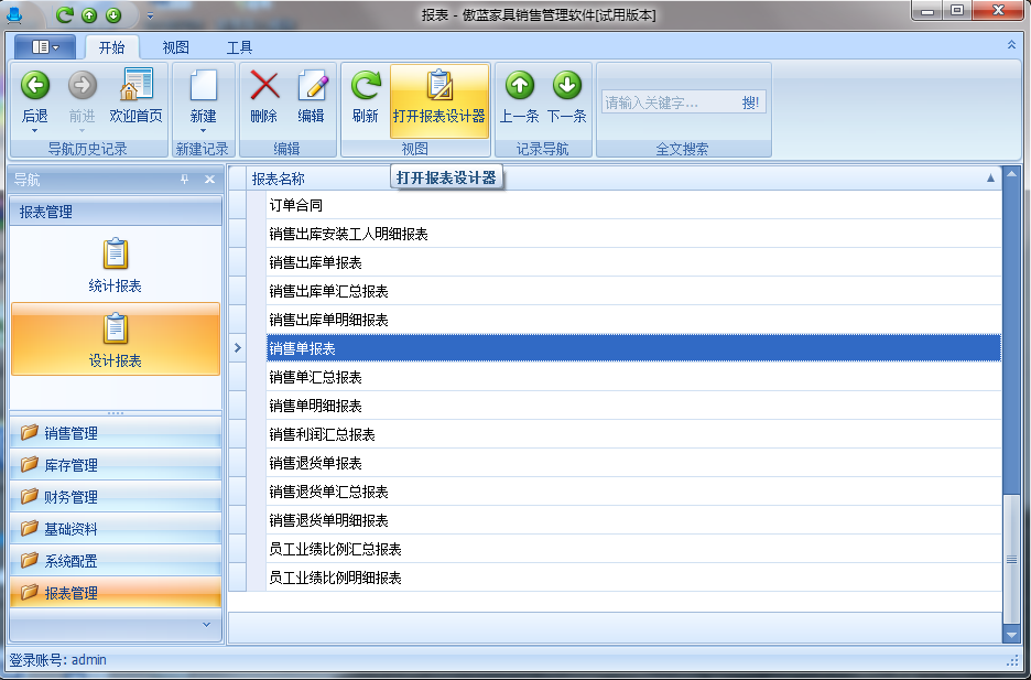 1、打開報表管理,點擊設計報表,點擊你要修改的報表,后點擊打開報表設計器
