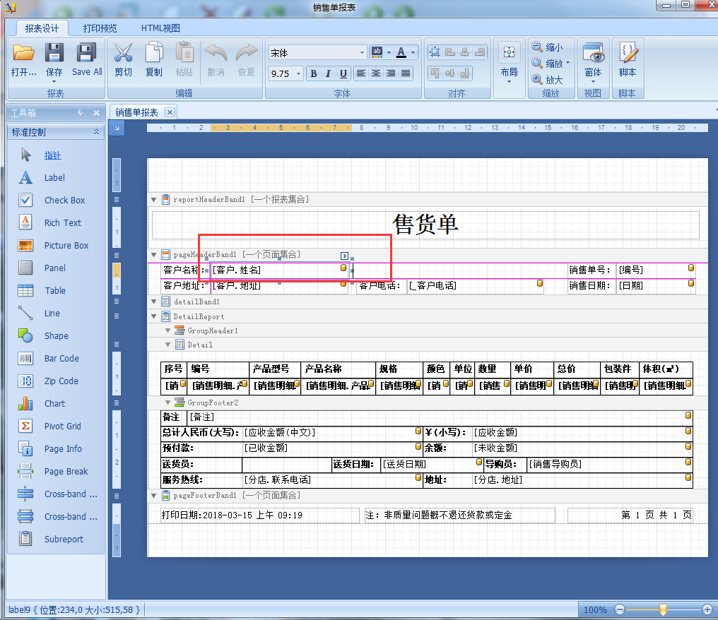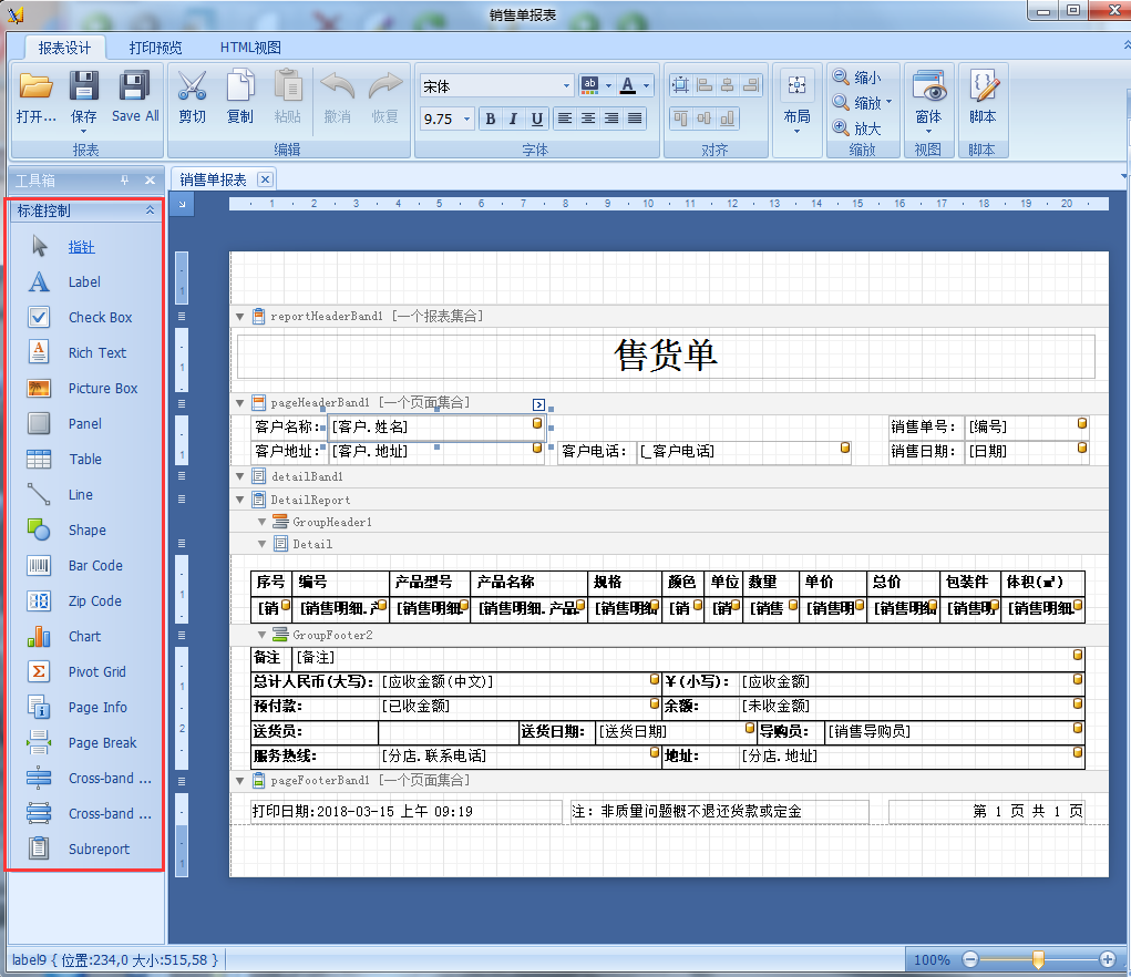 4、工具箱可以在報表添加對應的內容,如:標簽、復選框、圖片、表格等等。