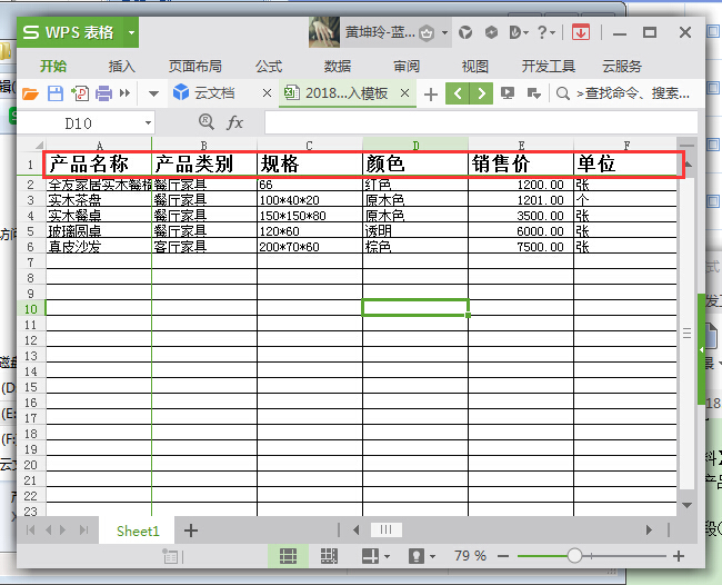 ①已有一個制成excel表格的家具產品資料信息,如圖: