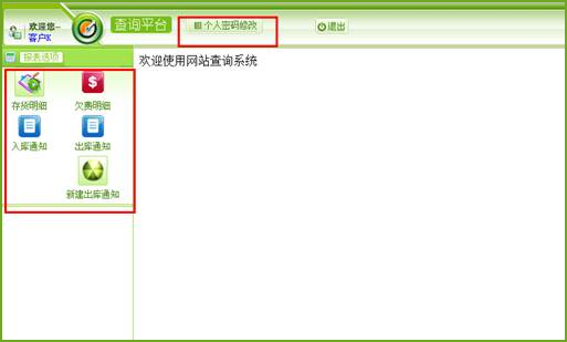傲藍(lán)冷凍庫(kù)管理軟件,客戶遠(yuǎn)程查詢功能。實(shí)現(xiàn)冷庫(kù)企業(yè)與客戶進(jìn)行互動(dòng)的功能體現(xiàn),客戶通過網(wǎng)頁(yè)登錄系統(tǒng),可遠(yuǎn)程查詢存貨明細(xì)與欠費(fèi)明細(xì)和商品出入庫(kù)的記錄,客戶可以修改登錄的密碼。