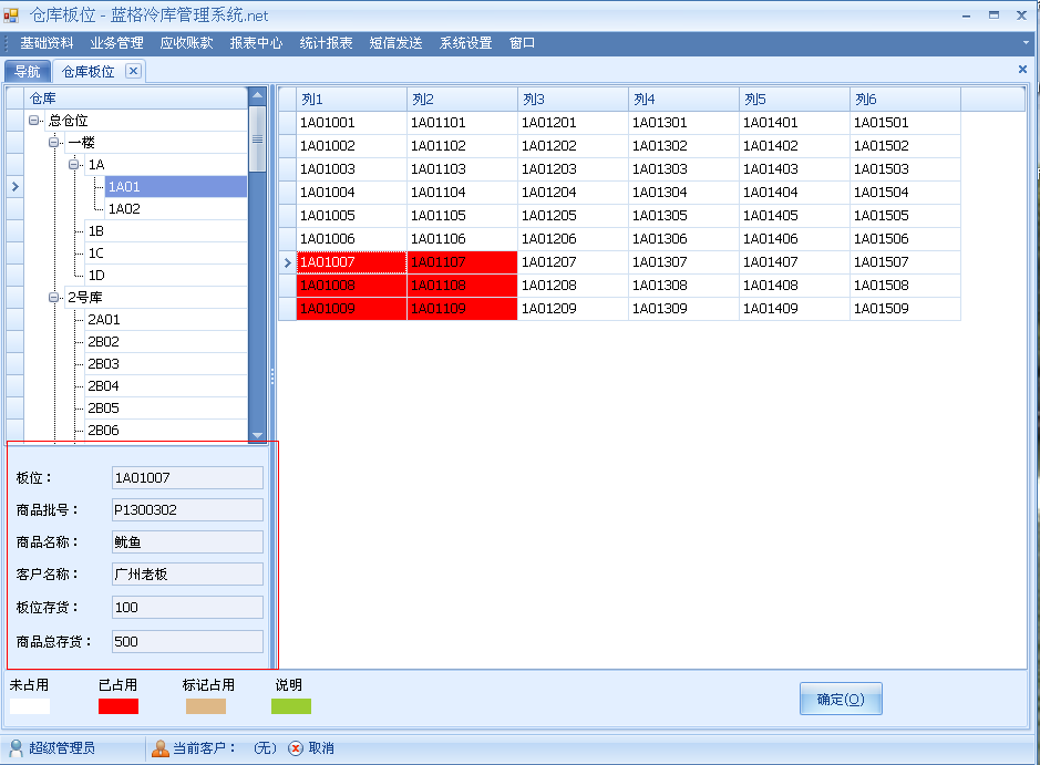 傲藍冷庫管理軟件通過無線手持終端設備管理,分細管理倉庫庫位、板位,讓冷庫更清晰每個倉庫板位的使用情況。庫板位占用管理是指使用冷庫管理系統(tǒng)可以任意錄入多個倉位,倉位里面還可以建立多個板位,對倉庫進行階梯式的管理,有利于冷庫企業(yè)更好的管理倉庫存貨,以及倉庫的占用情況。
