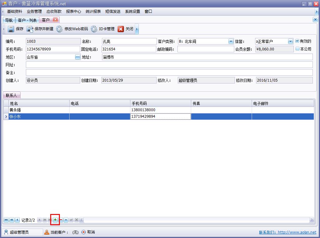 使用冷庫信息管理系統對客戶的一些基本信息進行錄入處理,如客戶名稱、客戶地址以及多個聯系人信息的存儲,在業務處理過程中,遇到需要聯系客戶的情況,調出客戶資料,就可相對應具體負責這項業務的聯系人,一對一地聯系溝通,避免了一些不必要的程序。