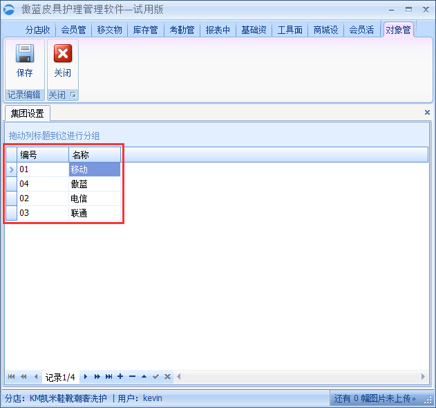 1、集團卡業務管理,首先點擊【基礎資料】→【集團管理】中建立一個企業集團,進入集團管理界面,點擊“+”號,填入編號以及集團的名稱即可,如圖: