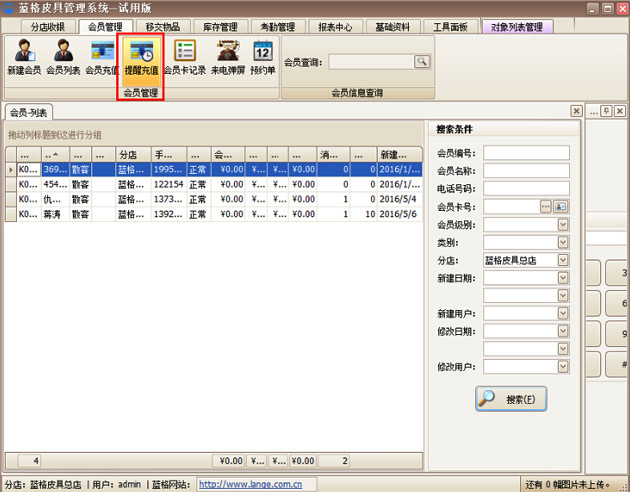 會(huì)員的基礎(chǔ)信息建立好后,傲藍(lán)皮具護(hù)理管理軟件如何給會(huì)員快速的充值,并查看充值信息。