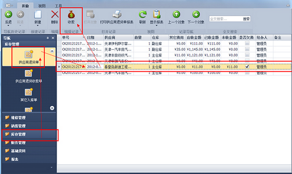 您可以通過以下兩種方式對供應商退貨單進行收款,其中種方式適合對單收款,而第二種方式能夠用于對供應商的多個供應商退貨單進行收款。