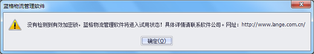 在試用版狀態(tài)下會(huì)彈出一個(gè)沒有檢測(cè)到加密鎖的提示,購(gòu)買正式版后,傲藍(lán)軟件公司會(huì)把一個(gè)加密鎖寄送給您,插入加密鎖到電腦的USB接口后再運(yùn)行傲藍(lán)物流軟件就不會(huì)再提示處于試用狀態(tài)了。
