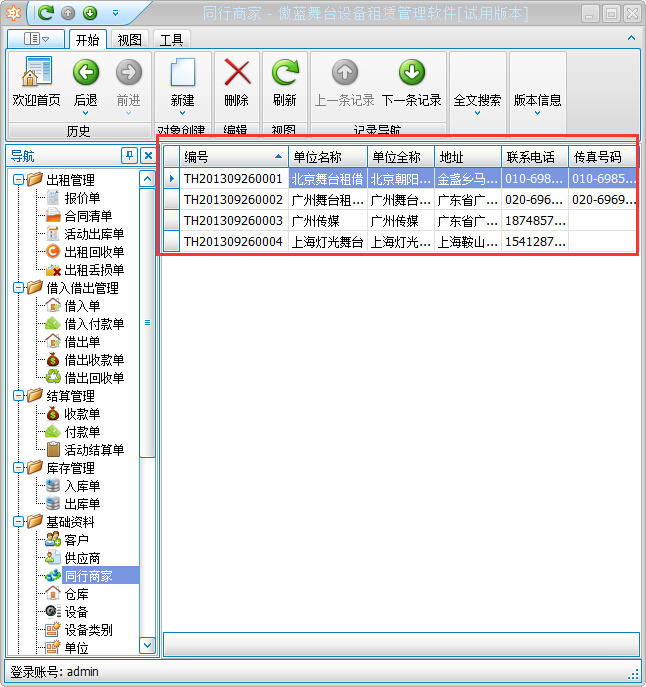傲藍舞臺租賃管理軟件提供同行商家信息有效管理,在軟件上登記同行商家的詳細信息方便管理。