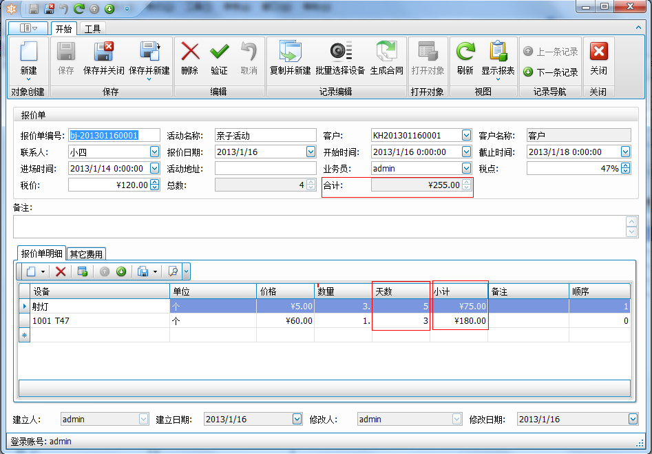 我國目前舞臺設(shè)備租賃的行業(yè),收費模式一般有區(qū)分按天和按場的收費。根據(jù)客戶的實際情況,傲藍舞臺租賃管理軟件有按天收費和按場收費兩個版本,根據(jù)行業(yè)的特殊性,到天或場的計費方式。普通倉儲軟件、財務(wù)軟件無法代替。請看下圖: