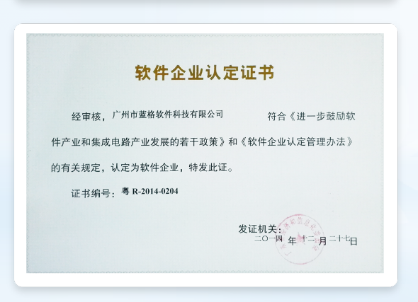 連續3屆9年,獲得國家“高新技術企業證書”;獲得“中國軟件行業信用等級AAA”證書;累計獲得36項軟著證書。